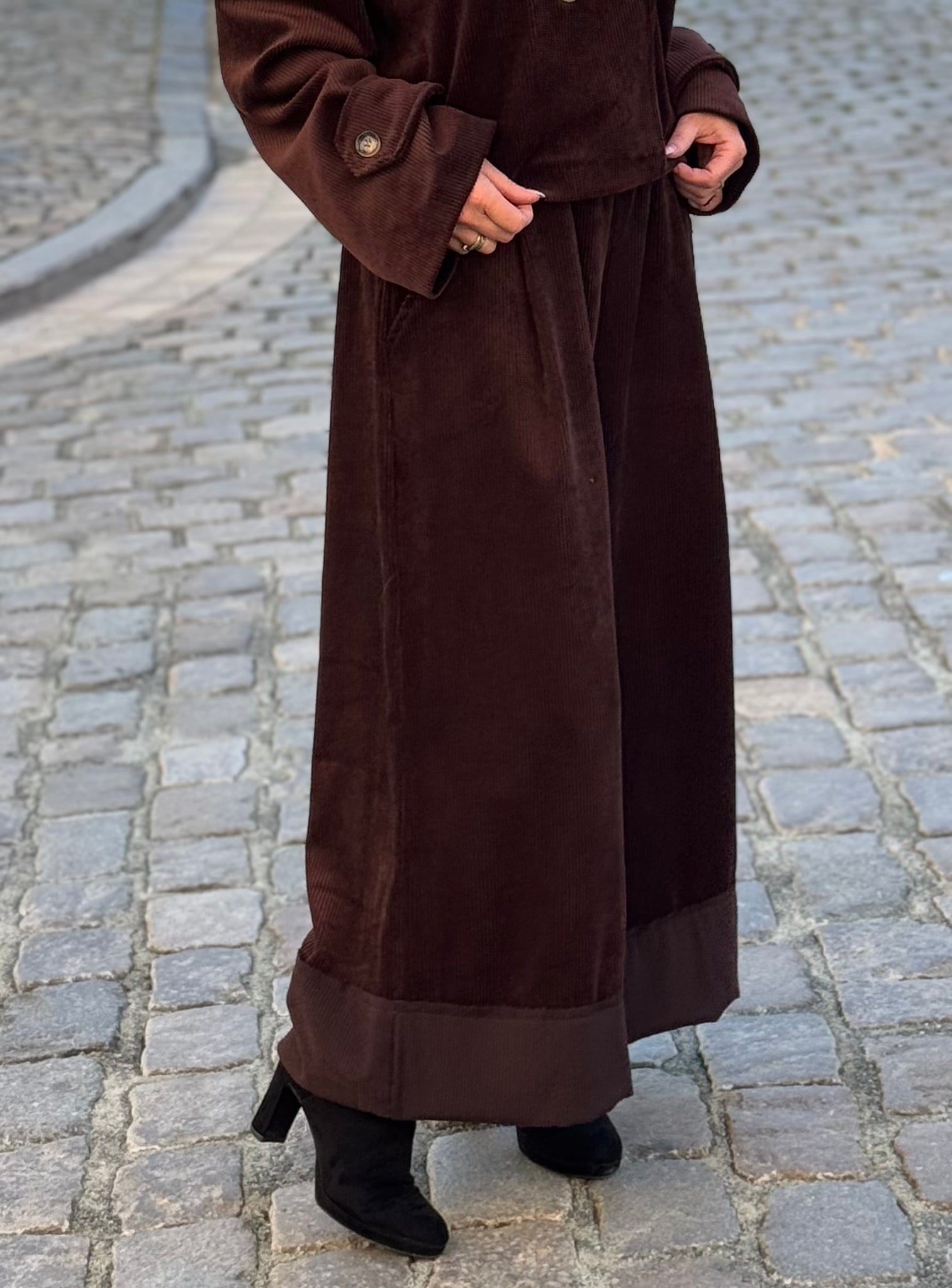 Elegante Cordhose mit weitem Bein und fließendem Schnitt. Die Einheitsgröße (34–44) bietet eine bequeme Passform und macht die Hose zum vielseitigen Styling-Partner – ob mit Bluse, Strick oder in Kombination mit der passenden Jacke für einen harmonischen Look. Das weiche Material sorgt für angenehmen Tragekomfort und ein stilvolles Auftreten.