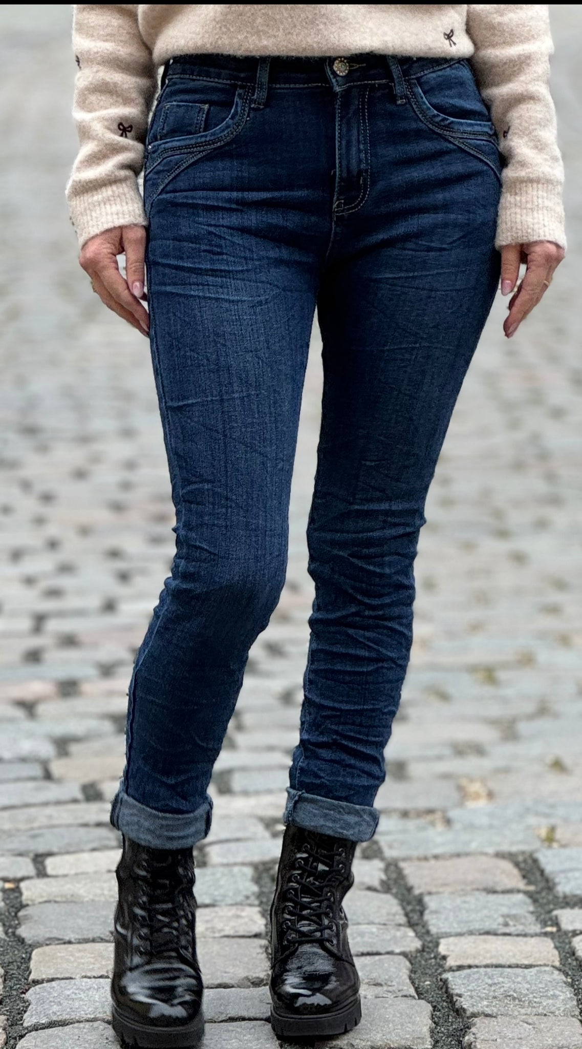 Ein klassischer Knopfverschluss, Gürtelschlaufen und ein schmal zulaufendes Bein runden das Design ab. Ob lässig mit Sneakern oder elegant mit Stiefeletten – diese Jeans ist ein vielseitiger Begleiter für jeden Tag.