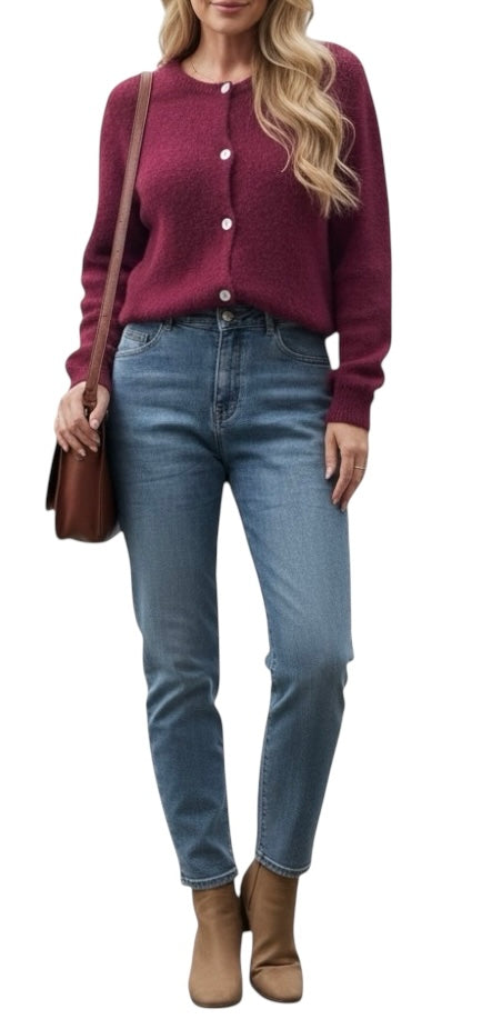 Diese edle Strickjacke ist ein echtes Must-have für die kühle Jahreszeit. Durch den hochwertigen Materialmix mit Alpaka- und Wollanteil ist sie besonders weich, warm und angenehm zu tragen. Klassisch mit Rundhalsausschnitt und Knopfleiste lässt sie sich vielseitig kombinieren – ob lässig zur Jeans oder elegant zum Rock.