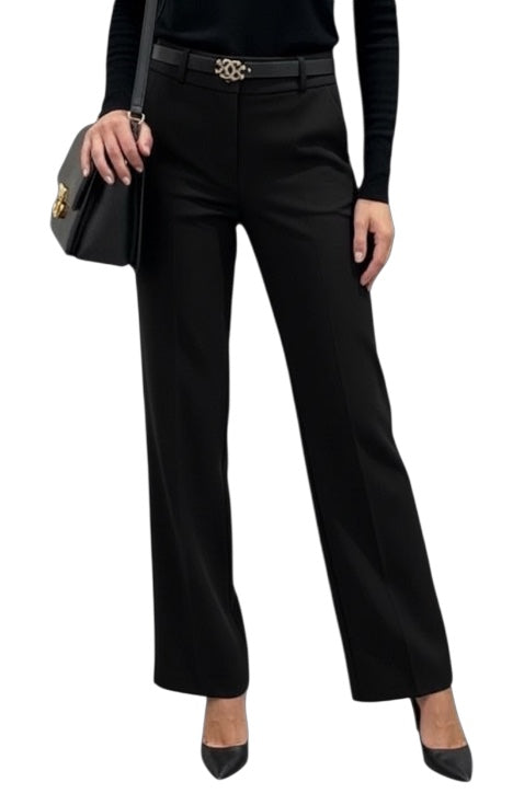 Diese zeitlose Damenhose überzeugt mit einer klaren, modernen Silhouette und einem komfortablen Sitz. Das hochwertige Material aus 100 % Polyester sorgt für Formbeständigkeit, Pflegeleichtigkeit und einen angenehm glatten Fall. Der gerade, leicht ausgestellte Schnitt streckt optisch das Bein und macht die Hose vielseitig kombinierbar – ob fürs Büro, besondere Anlässe oder den stilvollen Alltagslook.