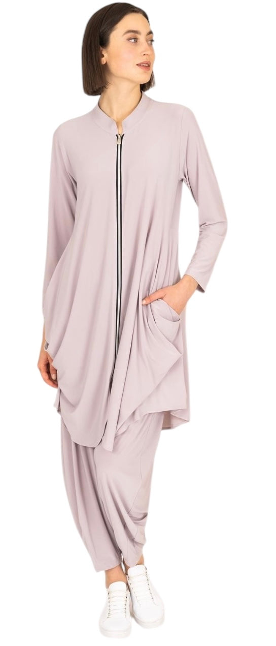 Elegante Longjacke/Tunika mit Zip – Einheitsgröße (34–48)
