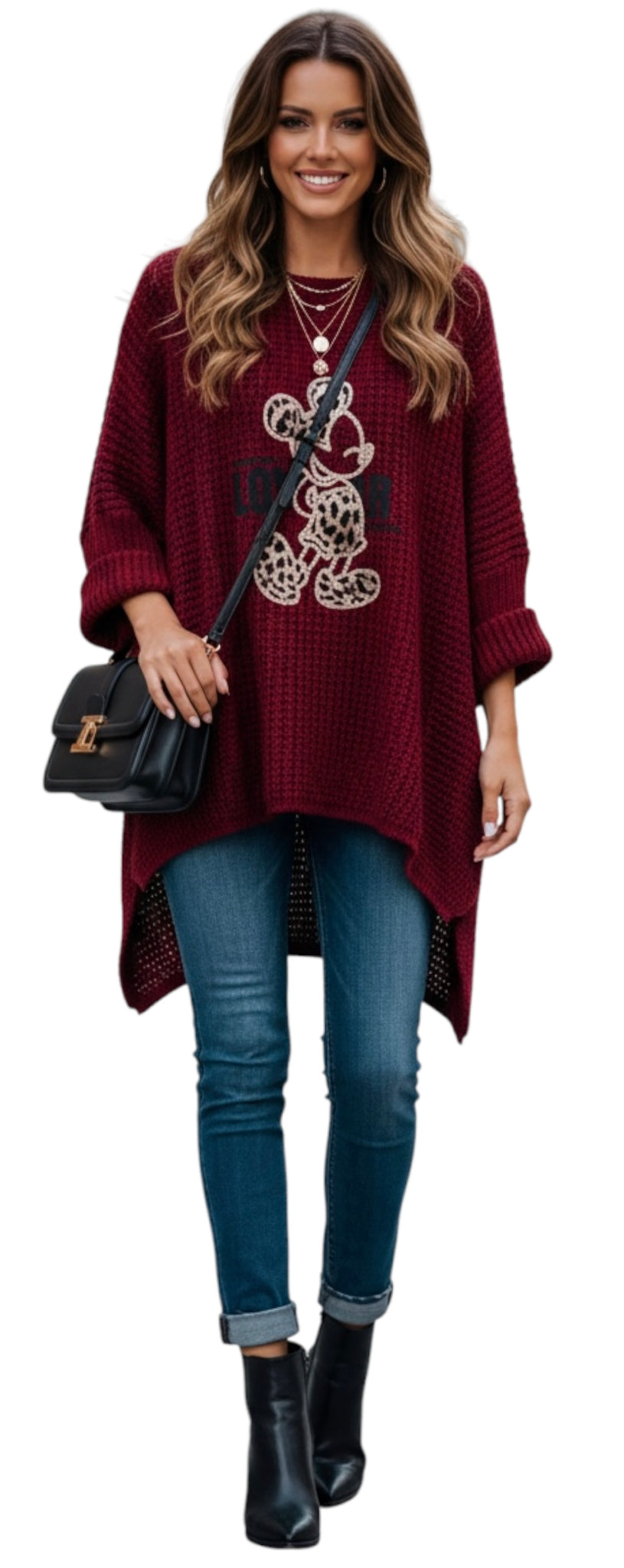 Diese lässige Oversize-Strickpullover-Tunika verbindet hohen Tragekomfort mit modernem, entspanntem Stil. Der lockere, länger geschnittene Fit mit leicht verlängertem Rückenteil schmeichelt jeder Figur und passt dank Einheitsgröße ideal für Damen von Größe 34 bis 50.
