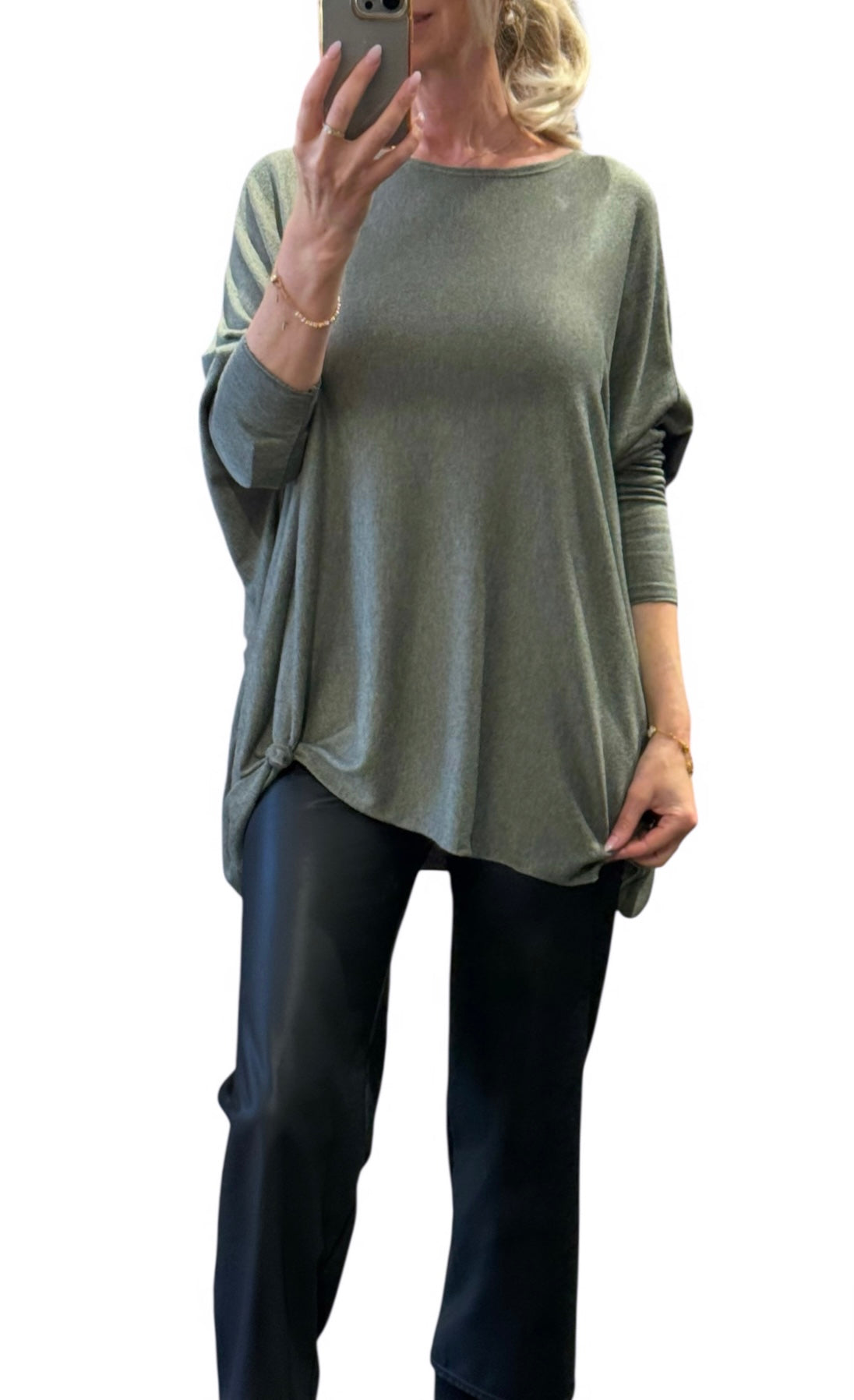 Dieser weiche Oversize-Pullover vereint lässigen Schnitt mit edlen Materialien und ist ein echtes Wohlfühlteil für jede Jahreszeit. Dank seiner lockeren Passform passt er von Größe 34 bis 50 und lässt sich vielseitig kombinieren – ob zu Jeans, Leggings oder eleganten Hosen.
