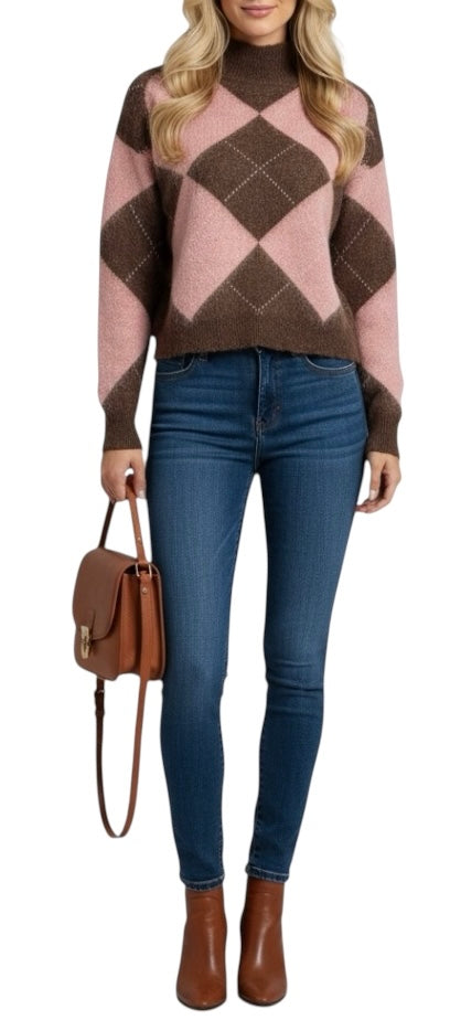 Dieser kuschelige Pullover mit klassischem Rautenmuster ist ein echter Hingucker und kombiniert zeitlosen Stil mit hohem Tragekomfort. Der angenehm weiche Strick fühlt sich warm und bequem an, während der leichte Stehkragen für eine moderne, elegante Optik sorgt.