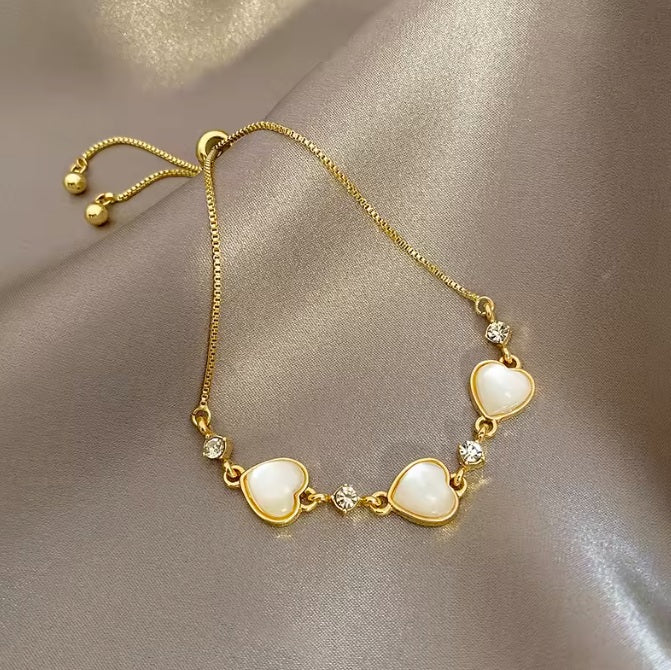 Armband aus Edelstahl, Perlmutherz - Strass, One-Size