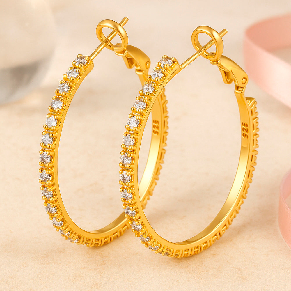 Ohrringe aus 925er Sterling-Silber, Creole mit Strasssteinen