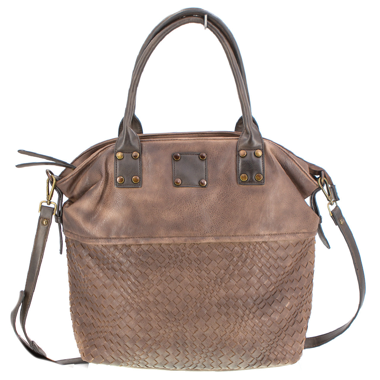 Angesagte Tasche in gewaschener Lederoptik. Mit Flechtoptik und Tragegurt sowie vielen Innenfächern- Breite ca. 34 cm Höhe ca. 40 cm Tiefe ca. 18 cm mit Smartphonefach, Reißverschluss Innentasche, Futer 100% Polyester