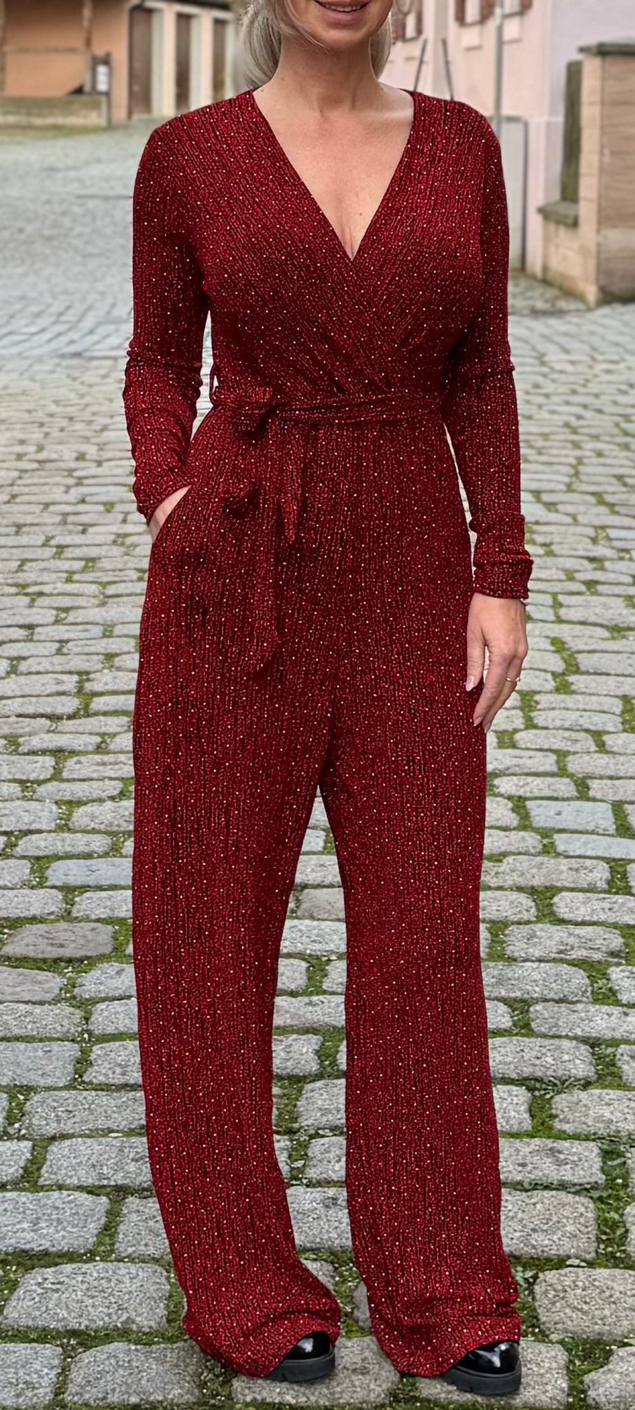 Dieser edle Overall vereint hohen Tragekomfort mit einem glamourösen Look – perfekt für besondere Anlässe, festliche Abende oder einfach immer dann, wenn du stilvoll glänzen möchtest.