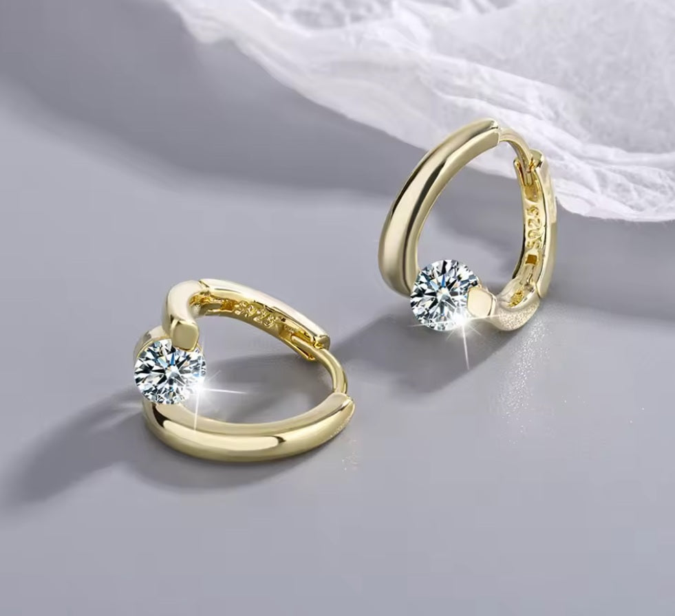 Ohrringe aus 925er Sterling-Silber, Creole mit klarem Kristallstein